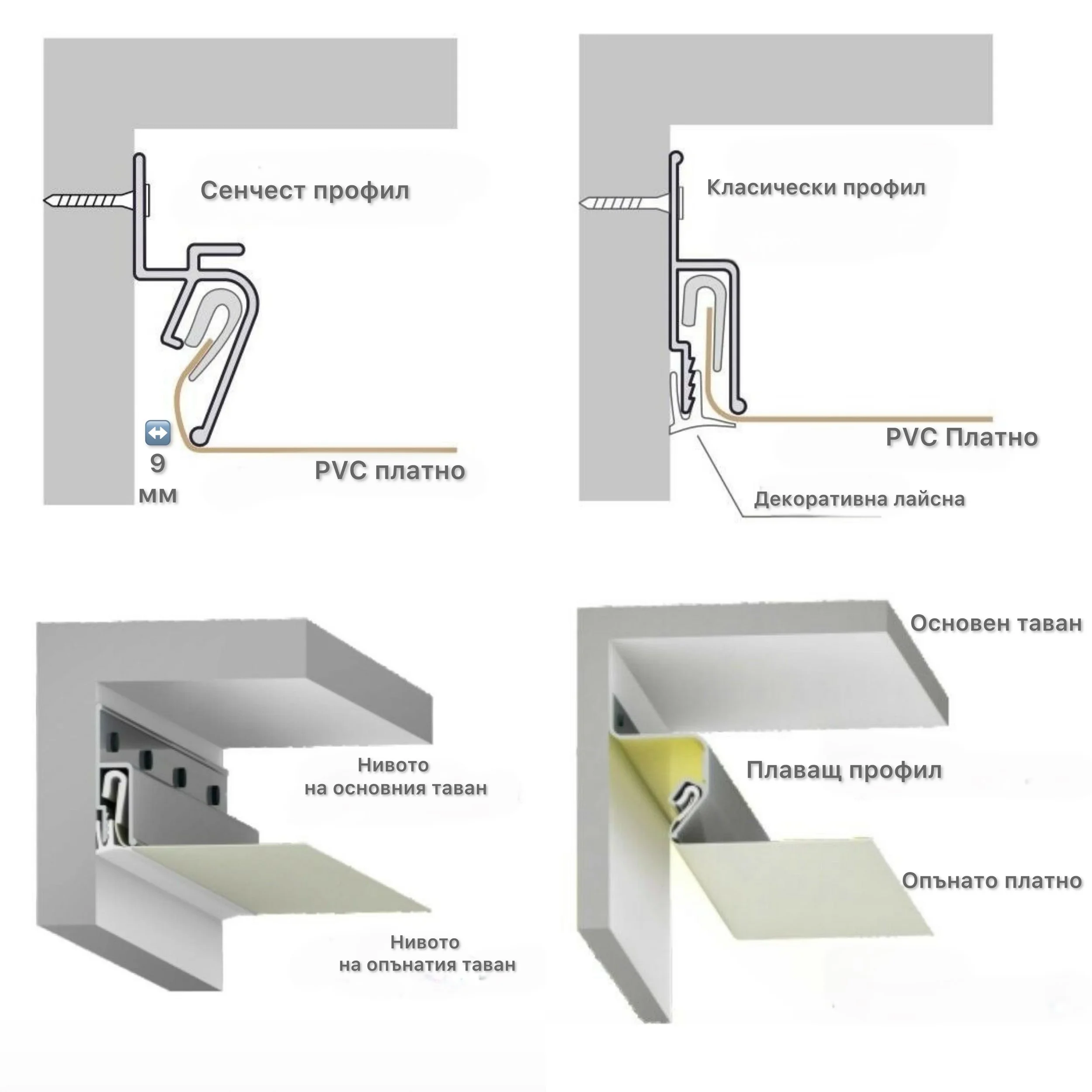 Опънатите тавани предлагат безброй решения за интериорен дизайн – от класически едноцветни повърхности до ефектни фотопечати, „звездно небе“, плаващи тавани с LED подсветка и много други. Благодарение на богатия избор от цветове, текстури и монтажни профили, можете да създадете уникална атмосфера във всяка стая. Идеално решение за модерни домове и стилни офиси в София, Пловдив и цяла България.