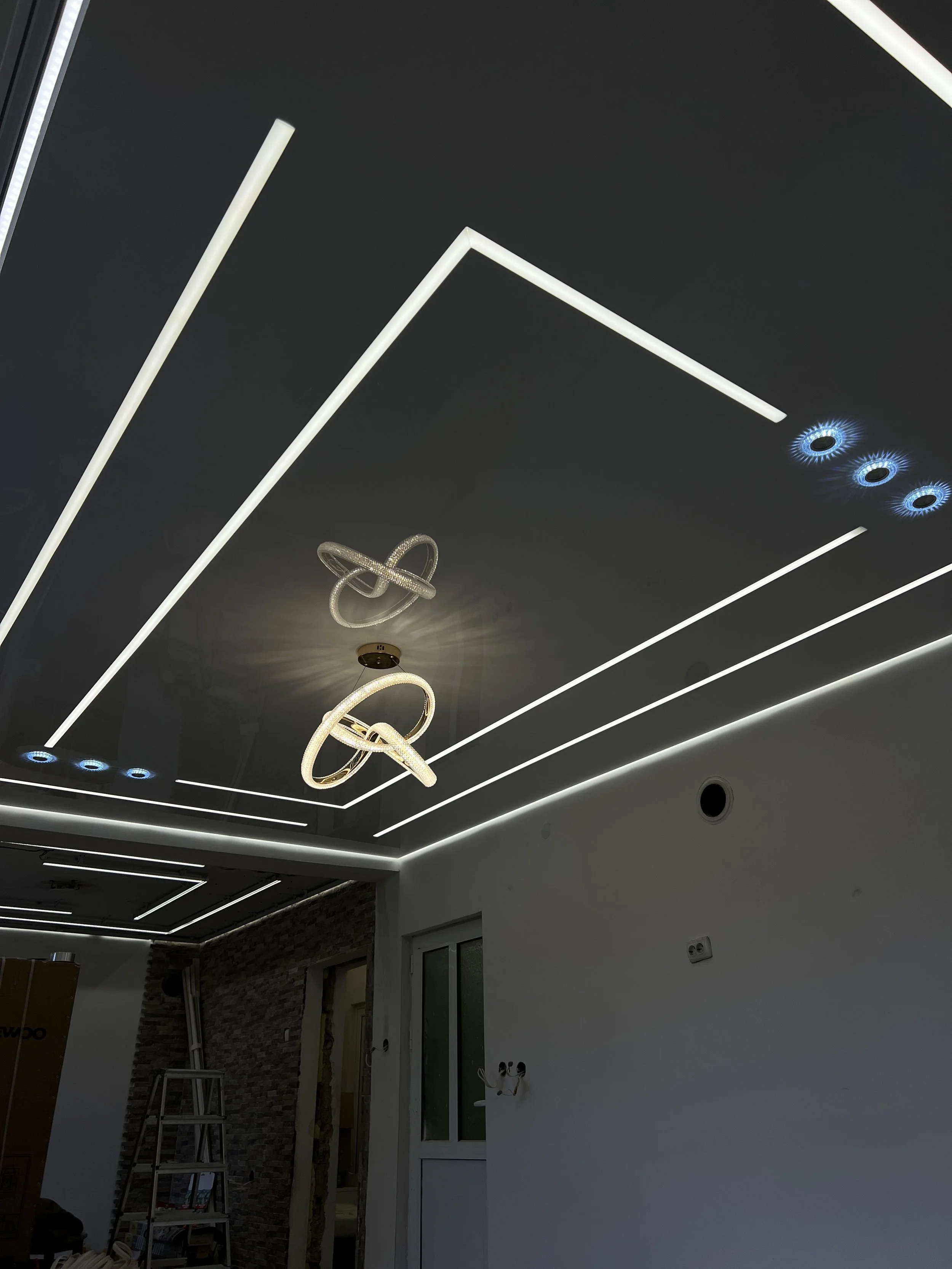 Вградените LED линии дават равномерно, икономично осветление и могат да се комбинират с димиране за различни сценарии — от функционална яркост до уютна вечерна светлина. Решението е идеално при ремонт и обновяване на интериора, защото монтажът е бърз, почти без прах, а поддръжката е минимална.