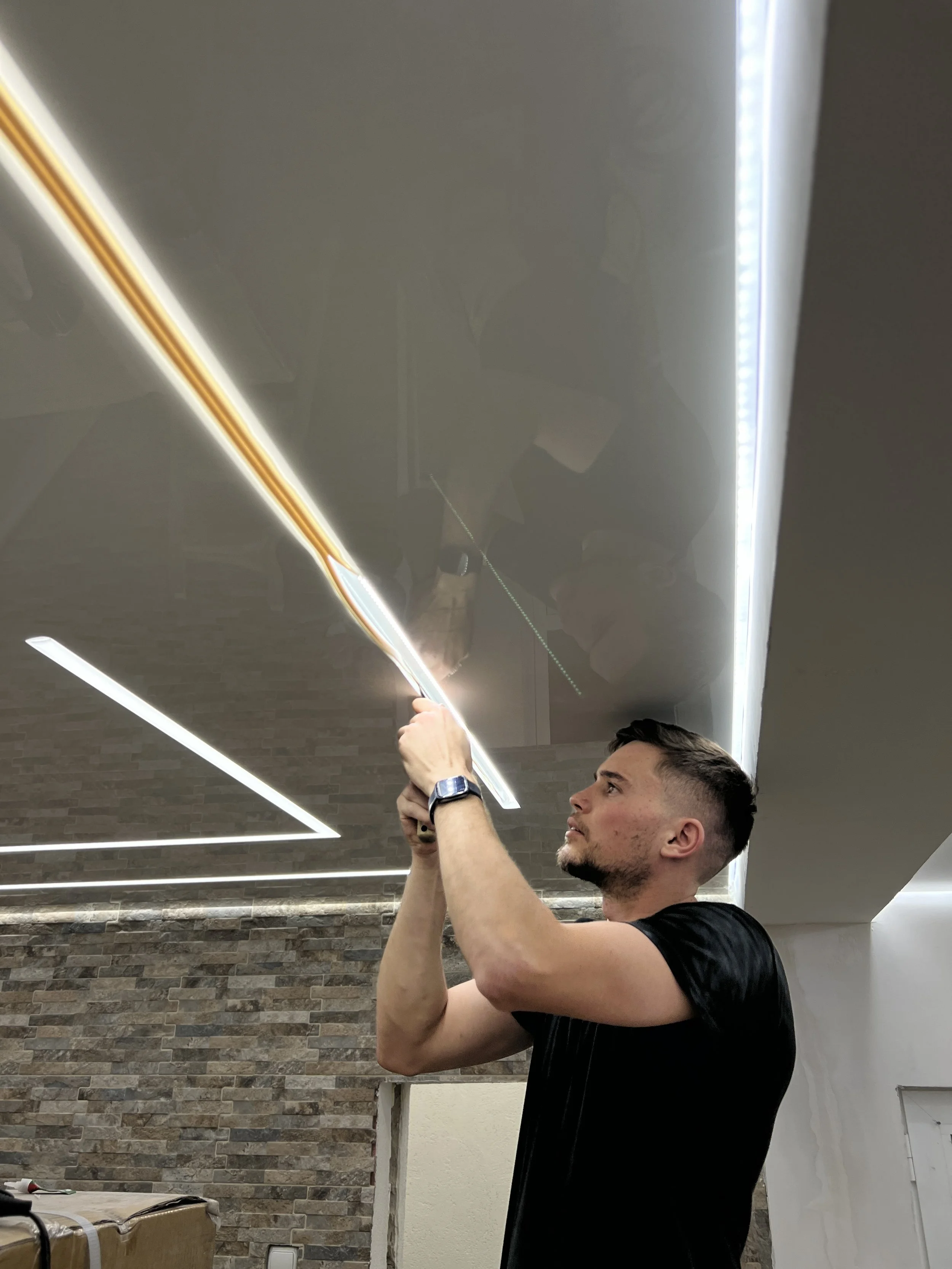 Монтажът става бързо – за няколко часа. Няма къртене, няма мръсотия. Платното може да бъде матово, гланцово, с цвят, със светлина или дори с красива снимка.