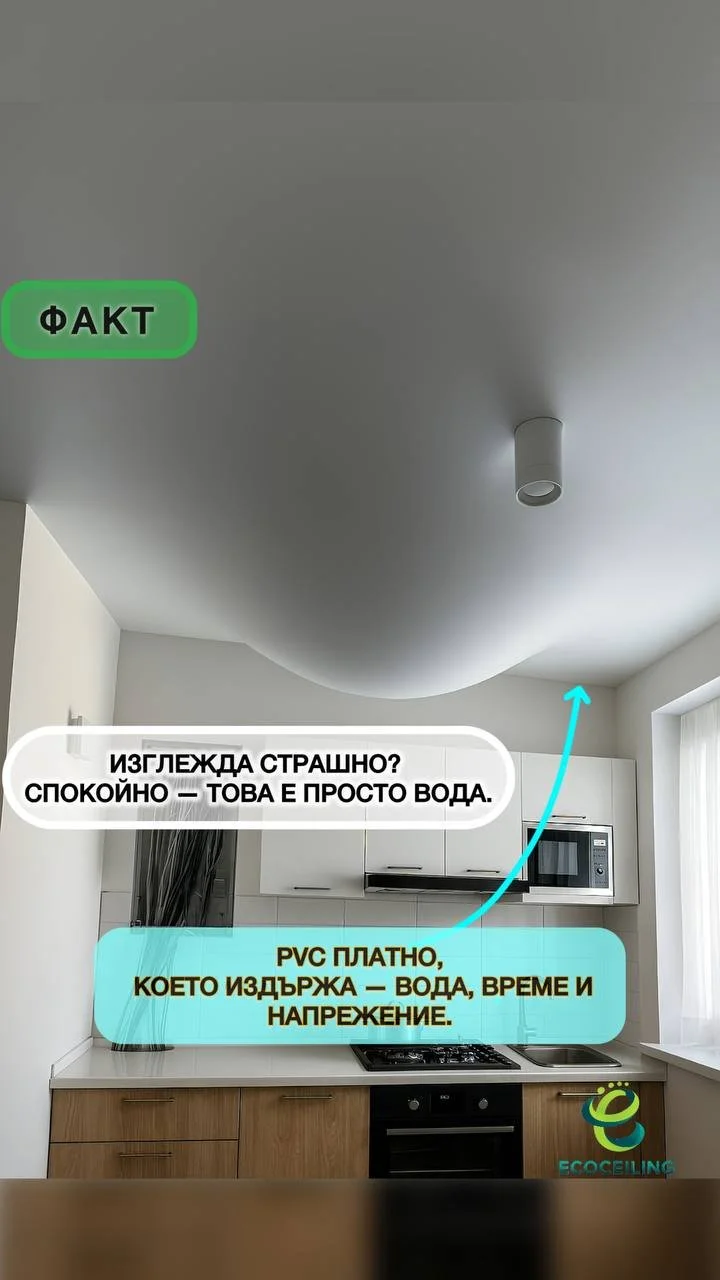 ПВЦ опънатият таван е най-надеждната защита за вашия дом при течове от съседите отгоре. Той издържа до 100 литра вода на квадратен метър без да се повреди. След като водата бъде източена и щетите – отстранени, таванът възвръща първоначалния си вид. Това го прави изключително практично и предпочитано решение в градове като София, Пловдив и други, където подобни инциденти не са рядкост.